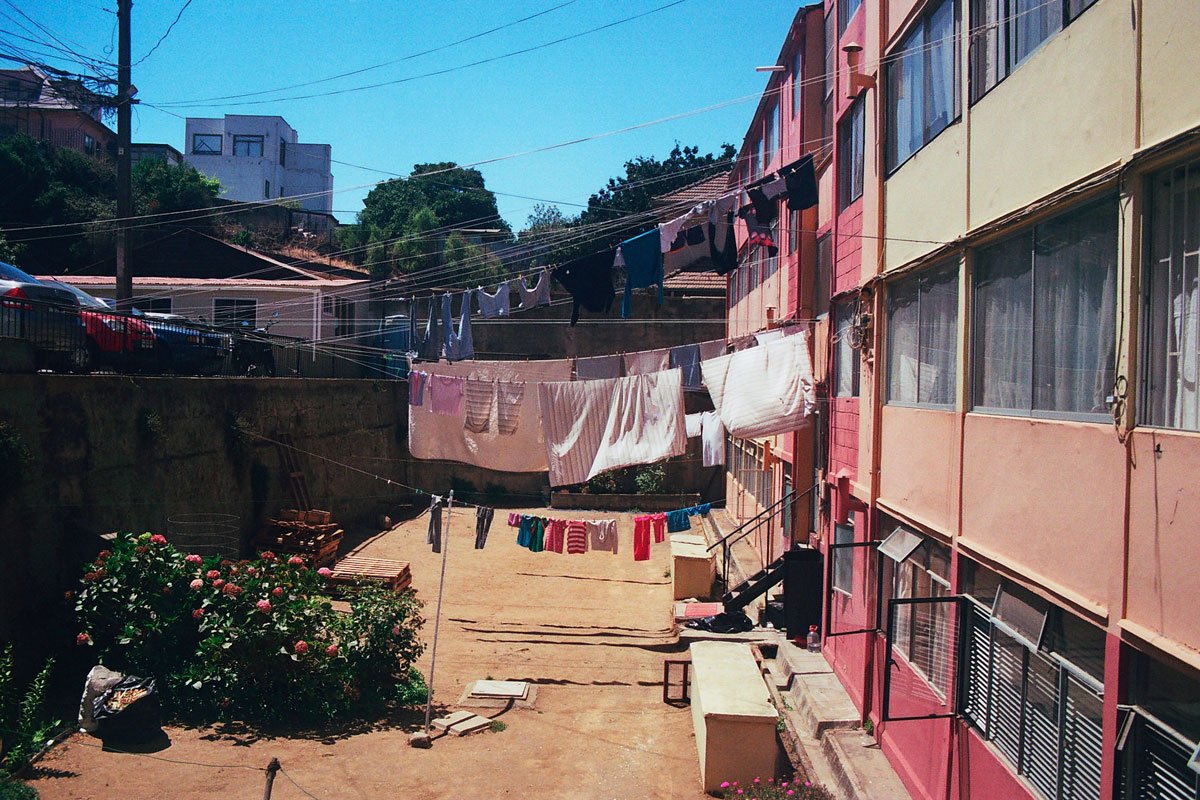 Where does a building adapt to its inhabitants—and where do its inhabitants adapt to the building?Filmed between Santiago and Valparaíso, this video documents laundry practices in three emblematic modernist buildings in Chile: Conjunto Avenida Alemania in Valparaíso (1970s), Unidad Vecinal Portales in Santiago (1954-1966), and Población Marina Mercante in Valparaíso (1962).